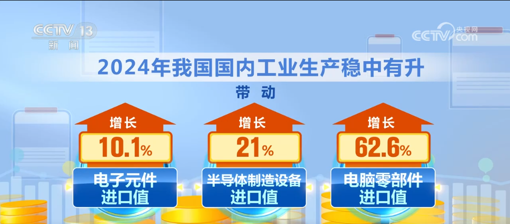 2024年,我国进口规模不竭扩大,不只满脚了国内出产需要,也丰硕了消费选择。客岁,我国国内工业出产稳中有升,带动电子元件、半导体系体例制设备、电脑零部件进口值别离增加10。1%、21%、62。6%;铁矿砂、煤等大商品进口量别离添加4。9%、9。9%、14。4%。同期,我国很多平易近生消费品的进口需求较为兴旺,如服拆、生果、葡萄酒等进口值别离增加5。6%、8。6%、38。8%。